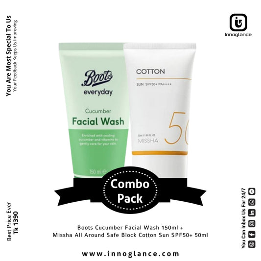 Combo Pack | Boots Cucumber Facewash & Missha Cotton Sun SPF50+