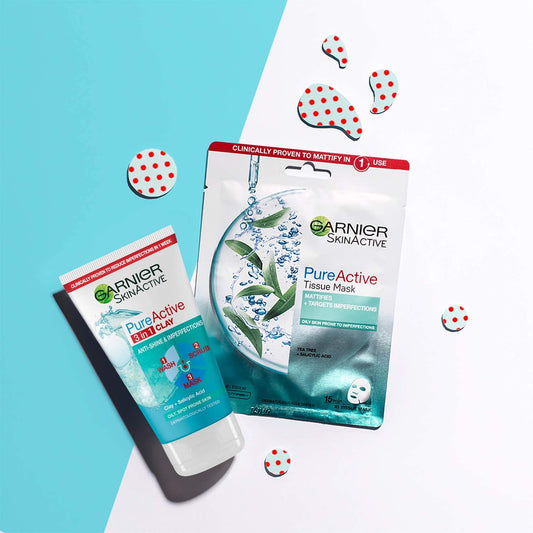 Garnier Pure Active 3 in 1 Clay Wash Scrub & Mask - 150ml