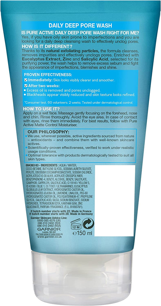 Garnier Pure Active Daily Deep Pore Wash Anti-Blemish & Shine - 150ml
